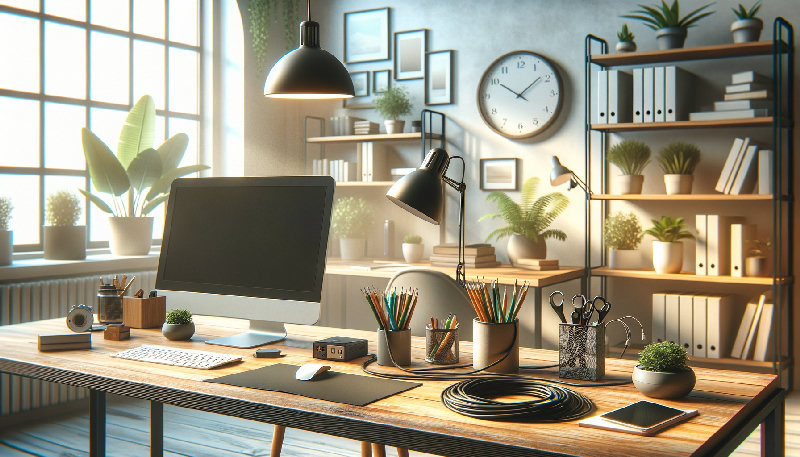 סידור חדר העבודה: ארגון כבלים ושולחן נקי